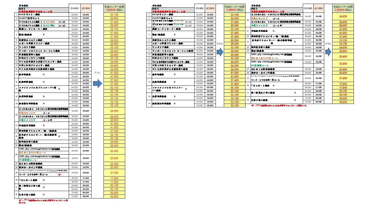 サービスセンター会員はその受講料からさらに15%支援価格でご利用いただけますので、大変お得に始めるチャンスです!