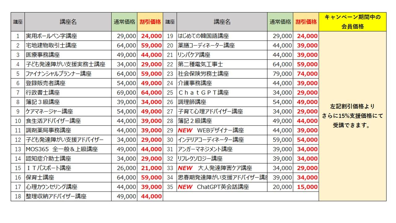 35講座の受講料が、通常よりさらにお安く受講できます。